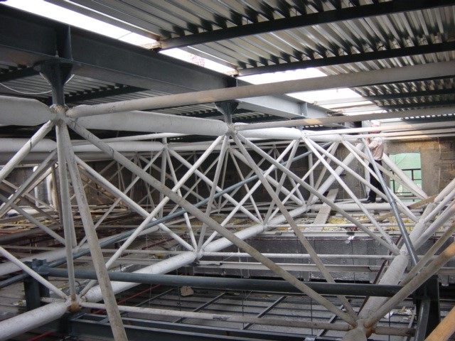網(wǎng)架結(jié)構(gòu)加固設(shè)計(jì)施工,包括鋼板幕墻,鋼吊頂,體外索加固網(wǎng)架。
