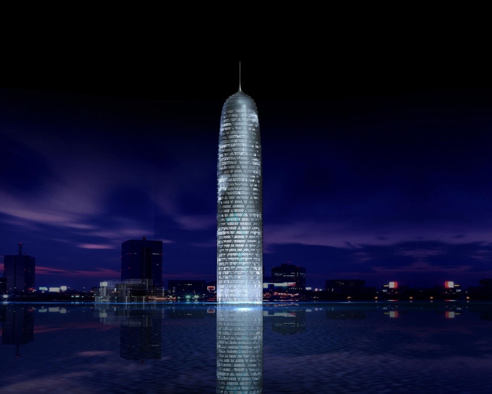 預應力施工。結構地下4層,地上44層,總高度231m,現澆混凝土交叉柱外筒網結構,內設核心筒。環梁及樓蓋受拉,在環梁中布置預應力。